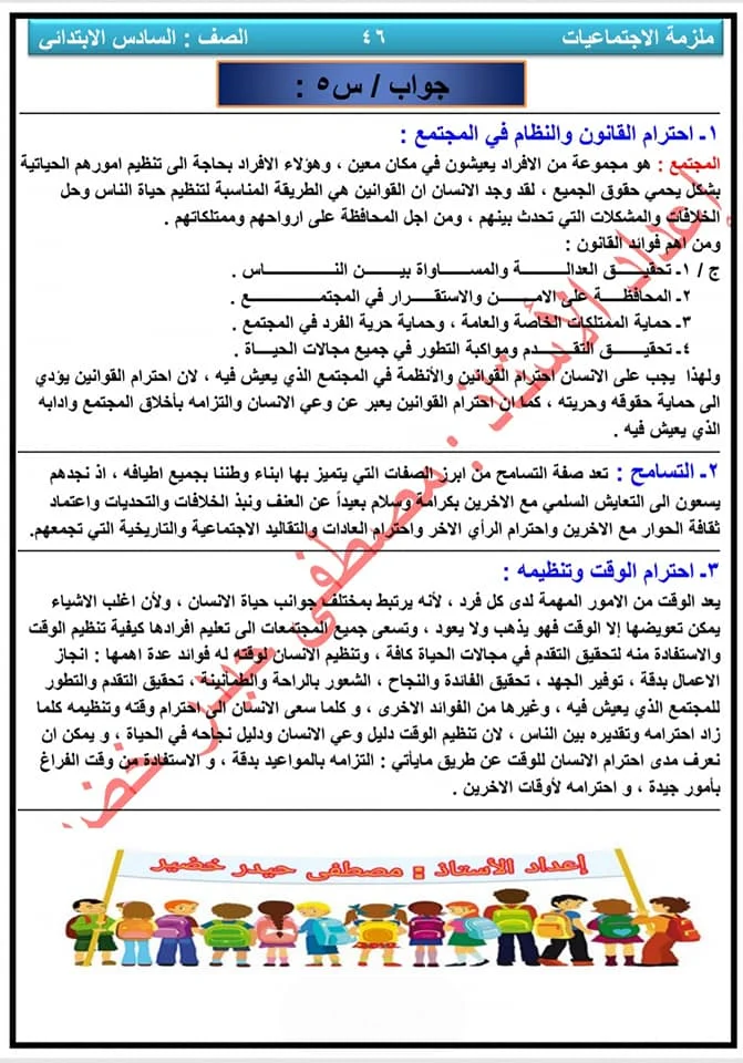 ملخص الاجتماعيات للصف السادس الابتدائي