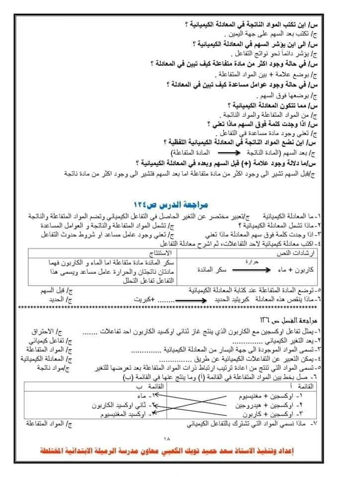 | اوراق ملخص علوم سادس ابتدائي |
