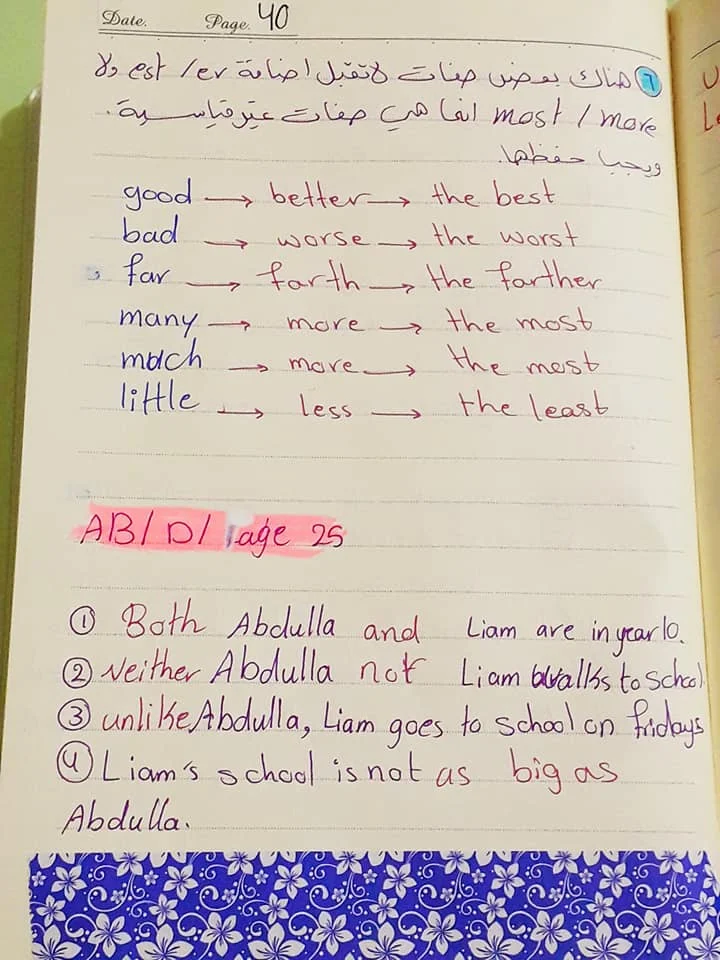 اوراق دفتر ملخص اليونت الثاني انكليزي رابع علمي وادبي قواعد اسئلة قطع انشاء حل التمارين