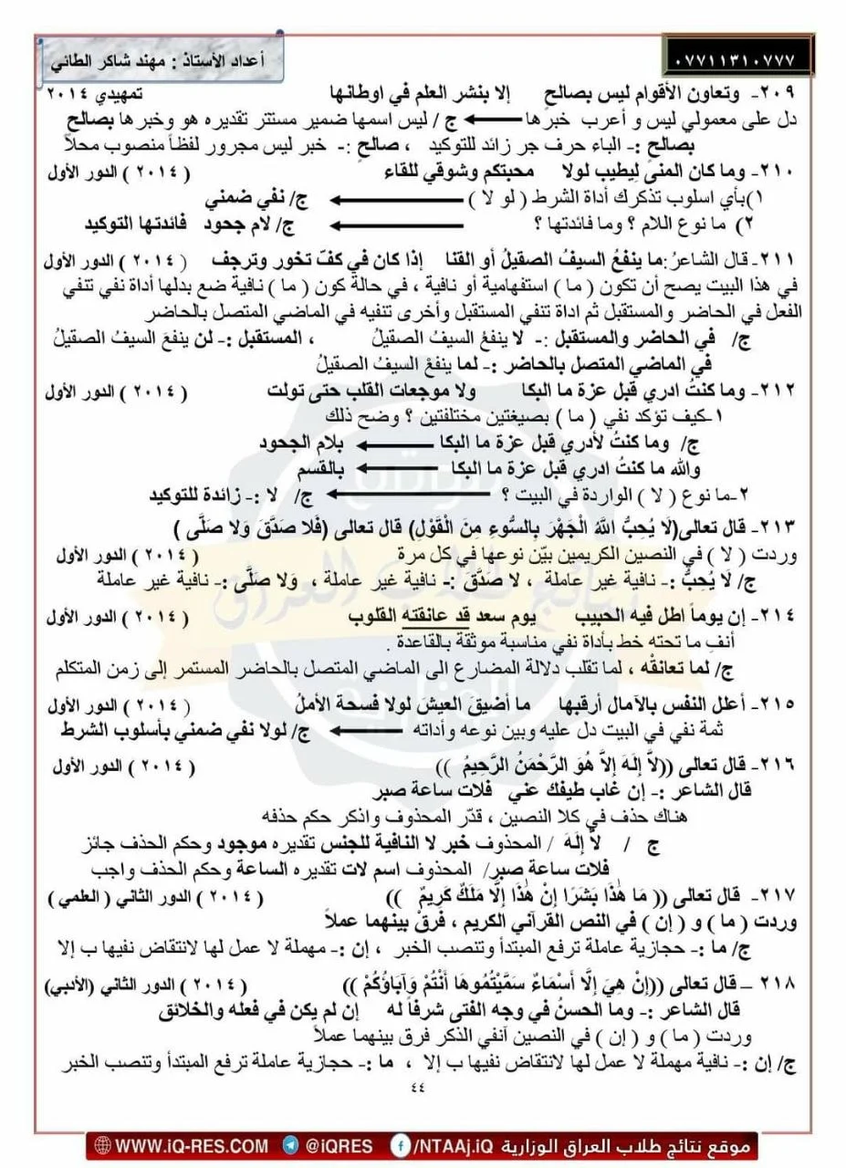 الحلول الوزارية لاغلب السنوات وزاري موضوع اسلوب النفي اللغة العربية سادس علمي وادبي