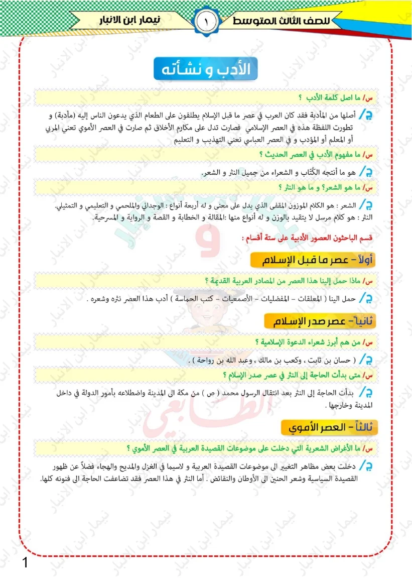 مرشحات الادب والنصوص صف الثالث متوسط الذهبية تضمن درجة كاملة