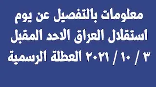 معلومات بالتفصيل عن يوم استقلال العراق الاحد المقبل 3 / 10 / 2021 العطلة الرسمية