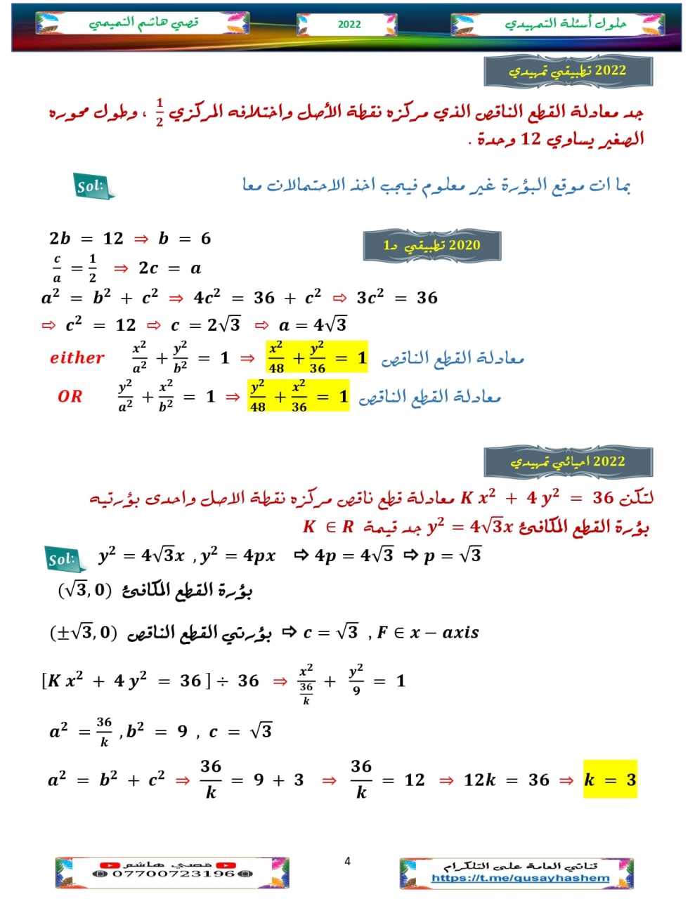 | اسئلة رياضيات التمهيدي سادس تطبيقي 2022 مع الحل |