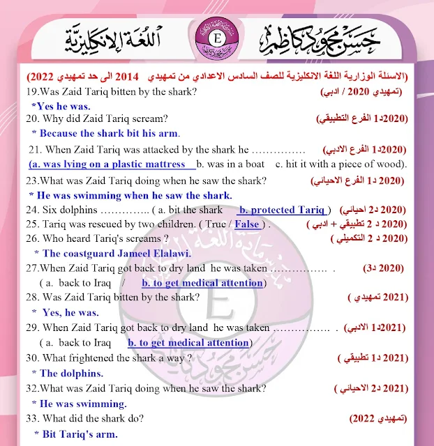 | حل الاسئلة الوزارية كان يعوم عندما شيءما يدفعه انكليزي سادس علمي وادبي من 2014 الى 2022 جميع الادوار |