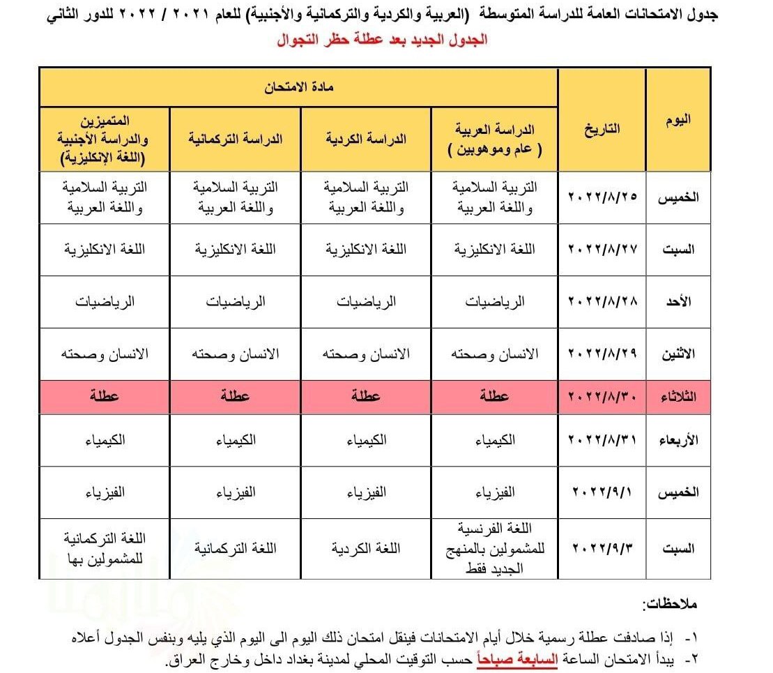 سؤال وجواب مهم للطلاب جدول امتحانات الثالث متوسط 2022 الدور الثاني