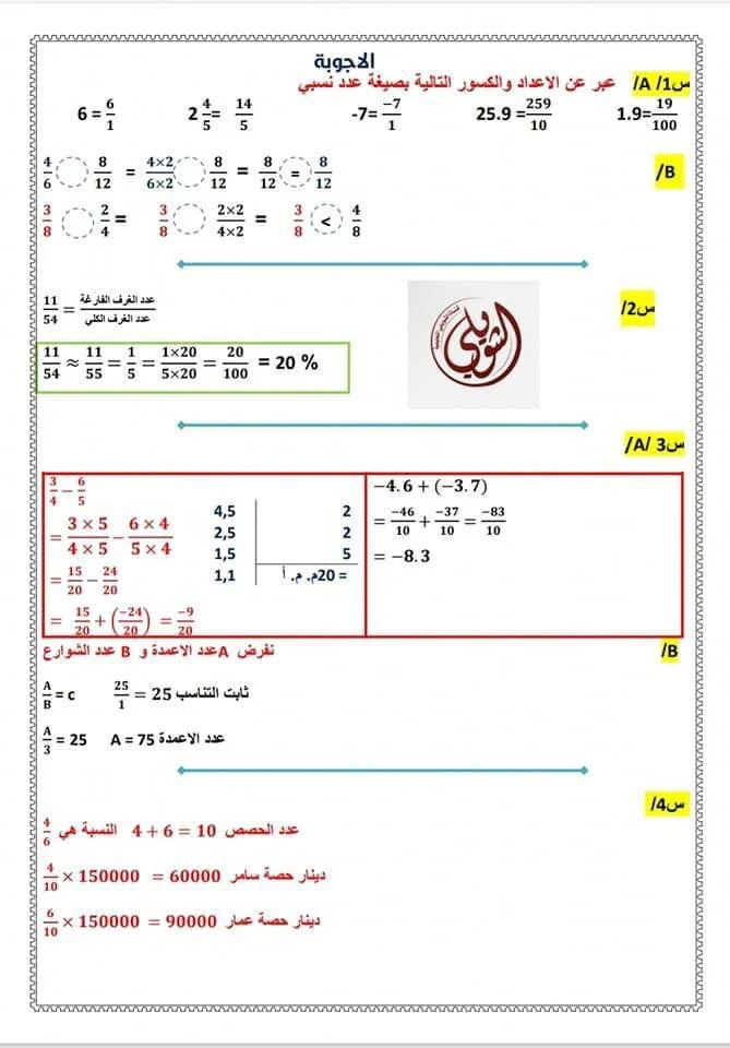 أسئلة مادة الرياضيات للصف الأول المتوسط الفصل الثاني مع الحل النموذجي للمزيد من هذه المواضيع اكتب في محرك البحث قوقل موقع استاذ احمد مهدي شلال
