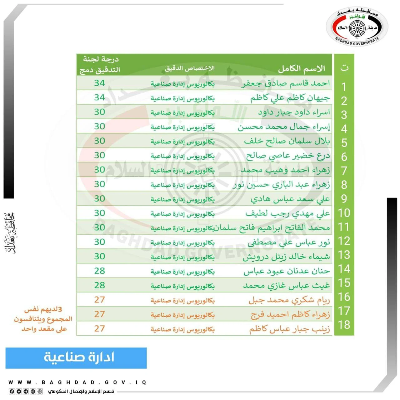 محافظة بغداد تعلن الدفعة الثانية من الأسماء الفائزة بالتعيينات بصفة عقود للإختصاصات (هندسة بيئة/ هندسة معماري/ هندسة ميكانيك/ الاحصاء/ إدارة صناعية/ سياحة وفندقة/ إدارة أعمال)