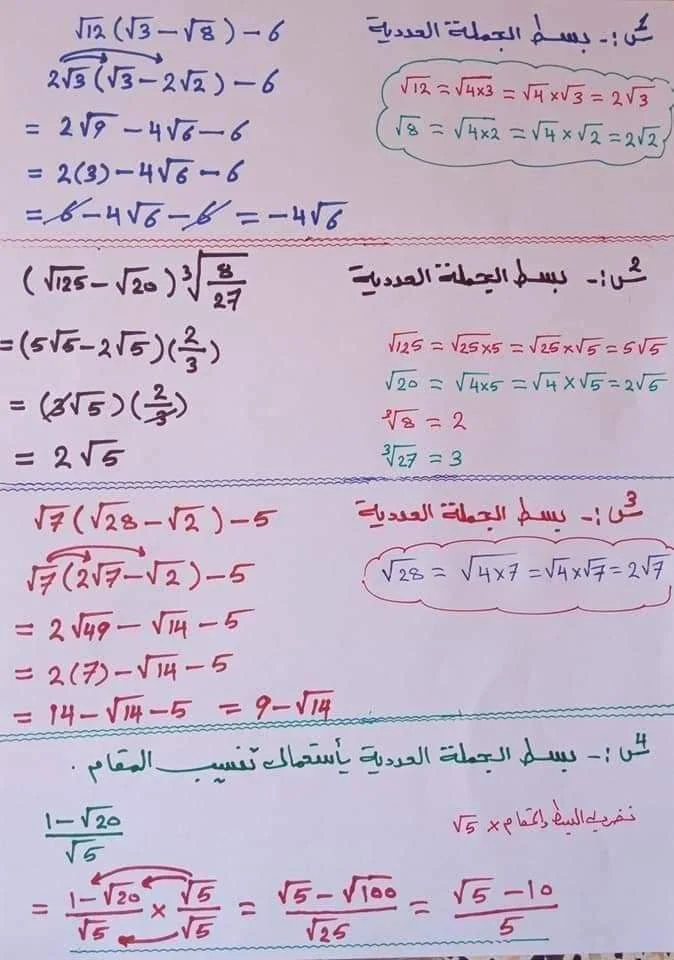 للفائدة العامة لطلبة الصف الثالث المتوسط 24 سؤال شامل لكتاب الرياضيات مع الأجوبة