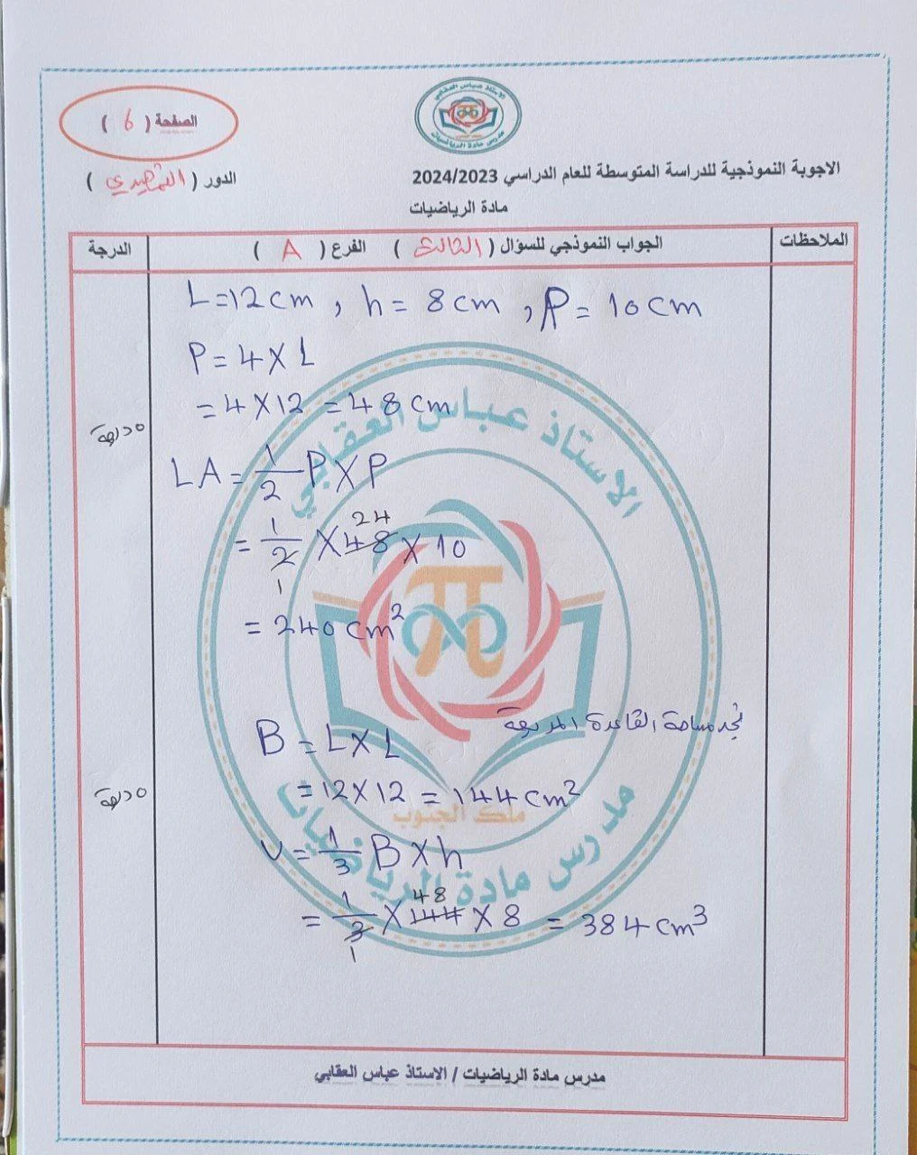 • اسم المادة : الرياضيات