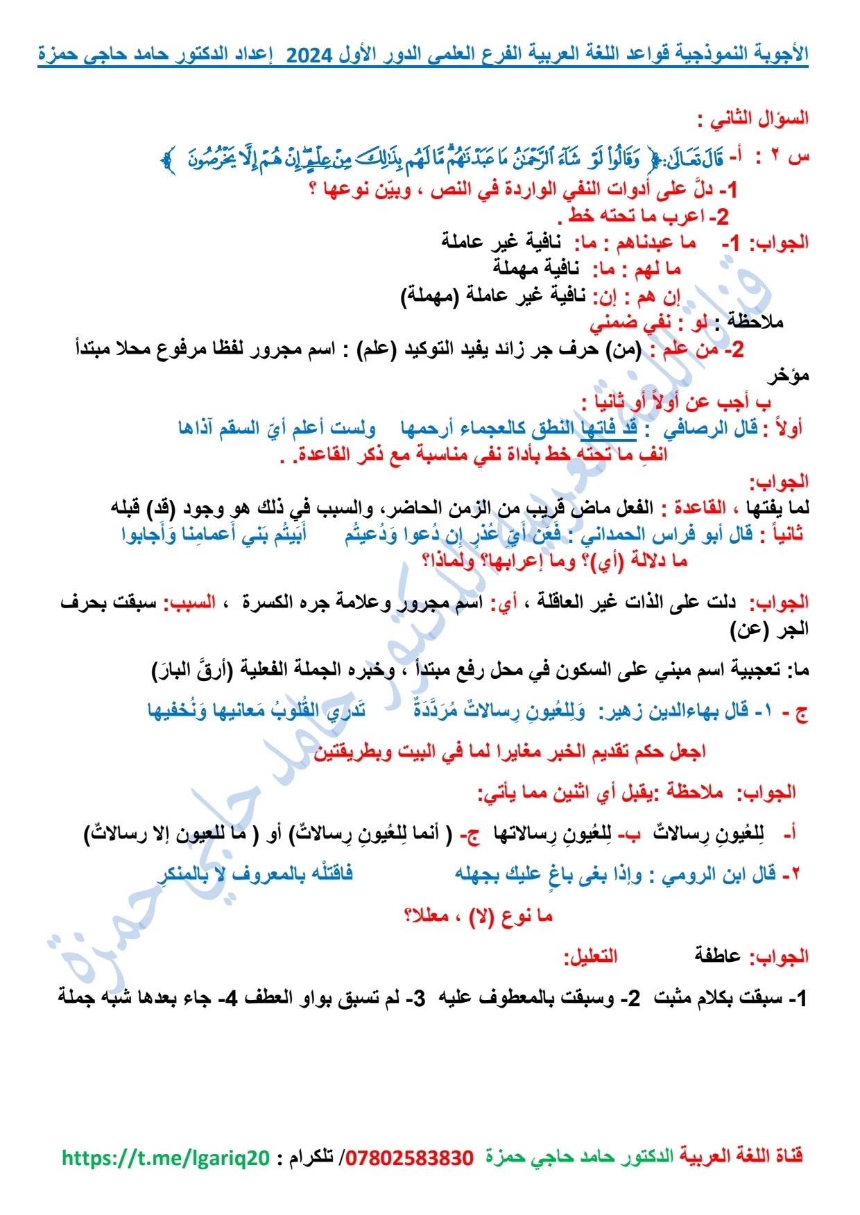 ملاحظة : تم نشر الأسئلة والاجوبة بعد انتهاء وقت الامتحان الوزاري الرسمي